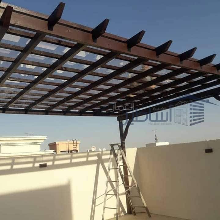 ويتم تركيب برجولات الحديد للحدائق والروف والبلكونات والأحواش وفوق أسطح المنازل.
